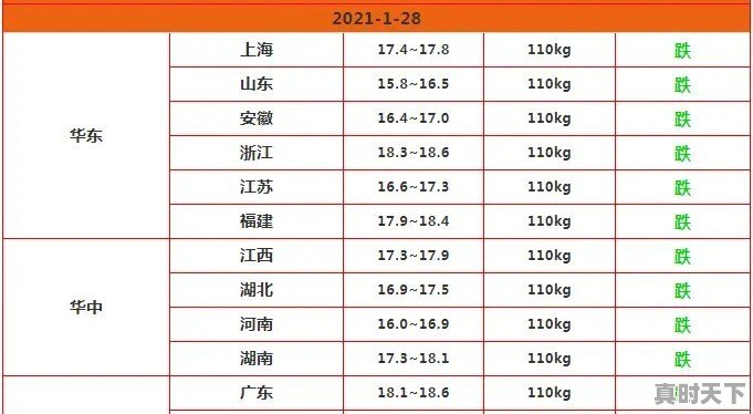 今天全国除了重庆生猪价格与昨日持平之外,其他所有省份生猪价格全线下跌,特别东北地区下跌的幅度更大,平均每公斤下跌了一元钱,而且生猪价格已经跌破16元每斤。